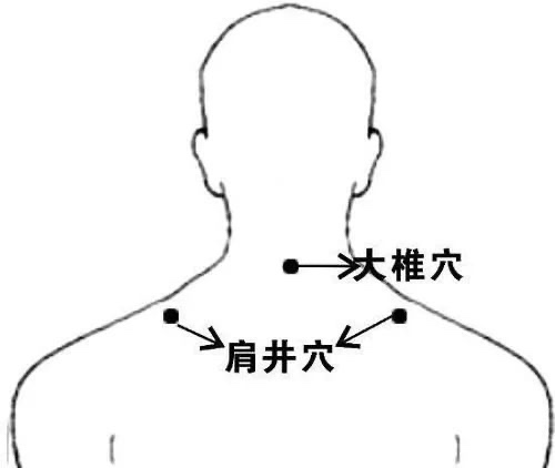(低头伸手摸脖子后正中位置,有一个骨性突起,转动脖子时可活动,即为大椎;肩峰即肩膀最外侧边缘。)