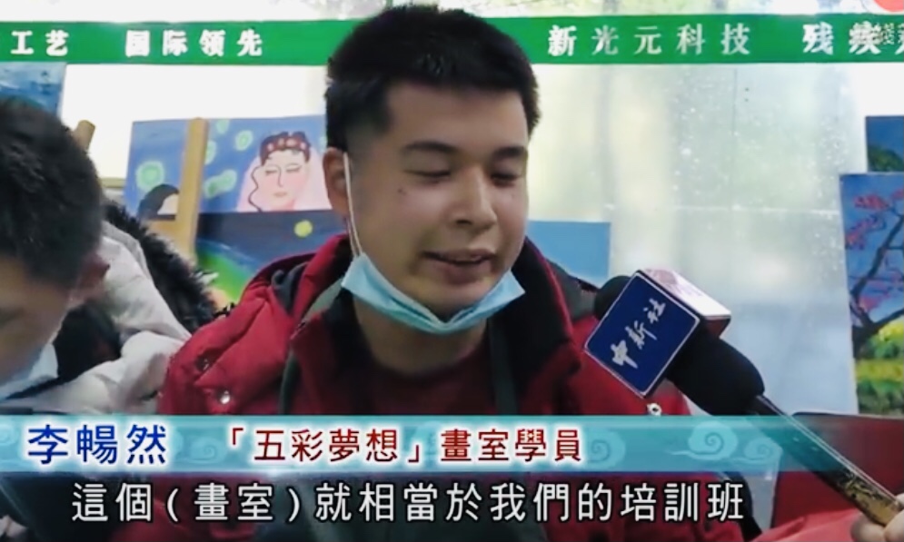 “五彩梦想”画室学员李畅然说:“以前我在家不爱说话,爸爸妈妈带我都有点困难了,这个(画室)就相当于我们的培训班,让我们来培训,让我们更爱说话一些、更爱沟通一点。”
