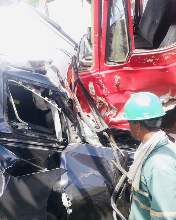 - 警方的消息称,有多人受伤,有一人死亡。死者54岁,名为Waldy Poniran。他乘坐的汽车被卡车撞中,之后他被困在汽车里。消防队员到达的时候,此人已无生命迹象。