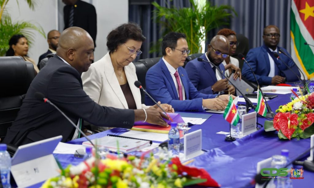 《星网讯》苏里南总统Jennifer Simons与圭亚那总统Irfaan Ali于周六共同确认两国友好关系,并同意在贸易、能源、农业、渔业及边境事务等领域深化合作。双方签署了联合声明。据外交、国际贸易与合作部长Melvin Bouva向媒体透露,下一轮会谈将于联合国大会期间在纽约举行。
