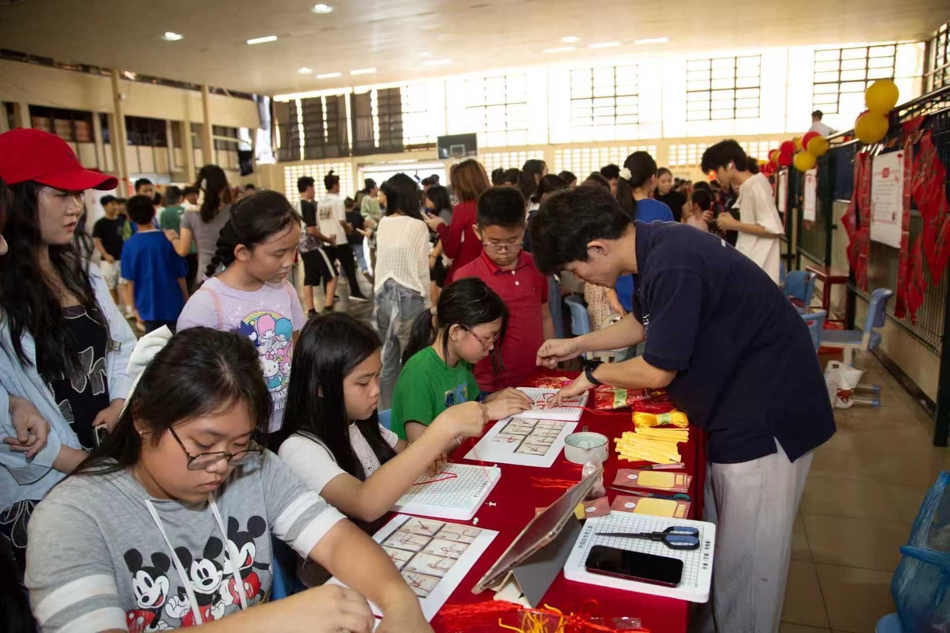 活动现场,剪纸、中国结、书法摊位前围满了热情的学生,大家动手创作,剪出灵动窗花、编织吉祥结、写下新春福字,在指尖感受传统工艺之美;捏饺子摊位暖意融融,一个个饱满的饺子满载团圆心意;唱中文歌、投壶、亲友乒乓球等互动项目更是人气爆棚,欢呼声、加油声此起彼伏,校园里处处洋溢着欢声笑语。