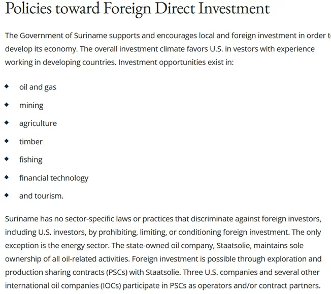 美国国务院报告:苏里南投资环境改善,改革措施与石油项目提振信心