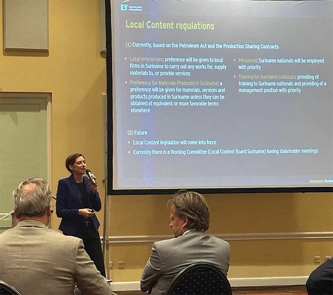 安永高级经理Agida Biervliet强调合作的重要性:”我们的职责是帮助企业理解如何不仅把握机遇,更能为可持续发展贡献力量。这需要知识共享、(本土化)合作以及对当地流程与苏里南文化的深入理解。”