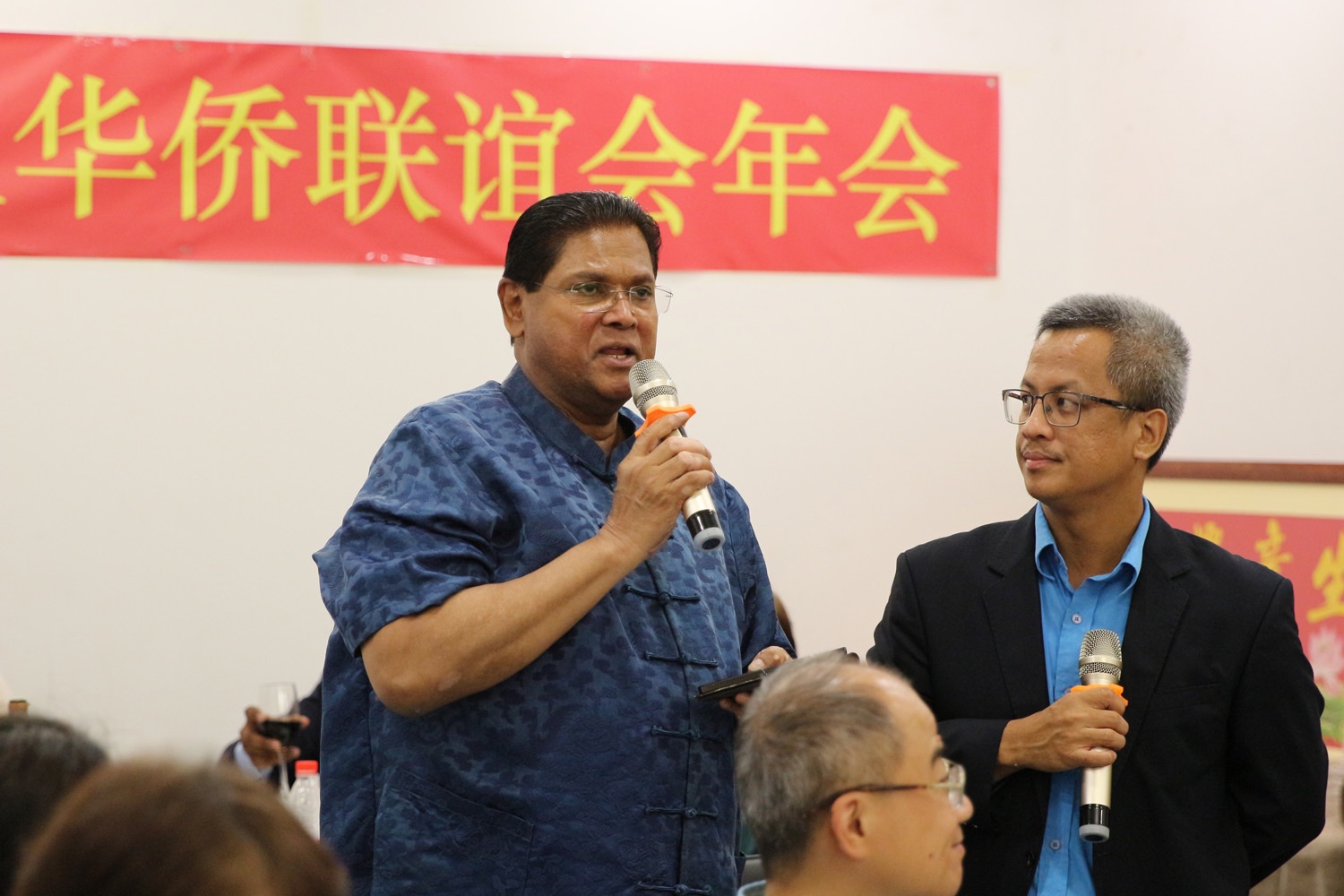 单多吉总统感谢中国大使馆对苏里南的支持和帮助,感谢中国公司、企业、商人为苏里南发展作出的贡献,强调苏方愿继续与中方合作,坚持一个中国政策。希望大家都来投票给VHP党,欢迎华人加入VHP党。