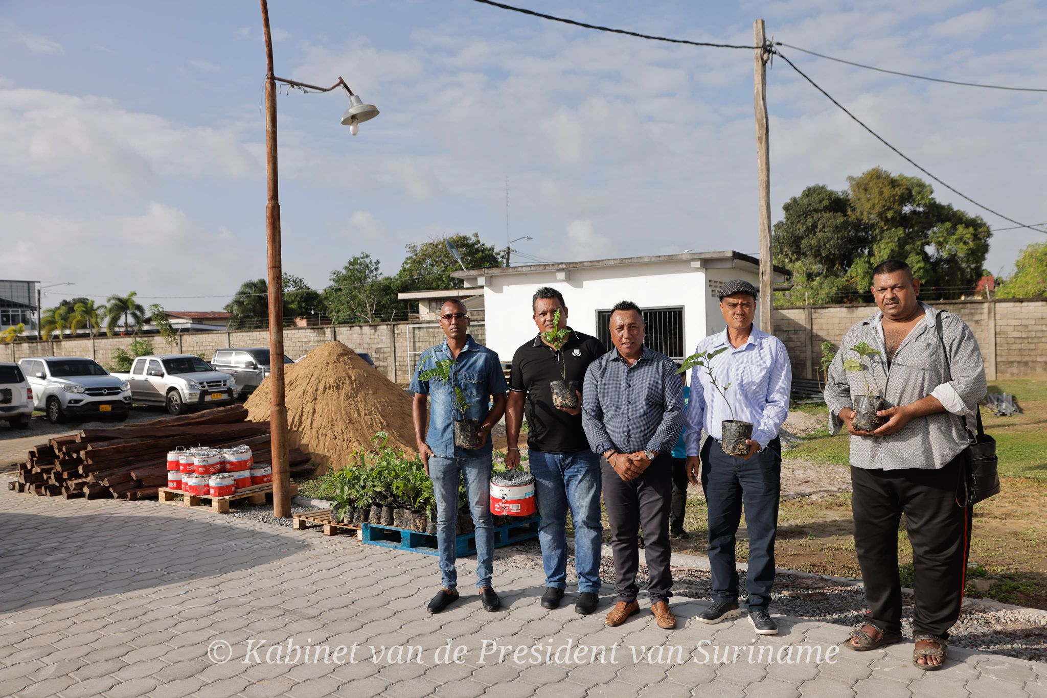 这个礼包里包括每公顷 1000 株百香果苗、1000 根木桩和 8 卷铁丝网,旨在为农民提供必要的生产资料,助力他们提高产量。总统 Chandrikapersad Santokhi 亲自向四名获选农户发放了首批礼包,现场还邀请了农牧渔部长 Parmanand Sewdien 以及印度驻苏里南大使 Subhash Gupta 共同见证。总统和部长在仪式上详细介绍了该项目的意义。