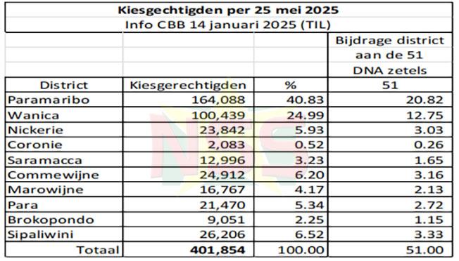 《星网讯》苏里南中央选举委员会前主席Lothar Boksteen近日表示,帕拉马里博区在即将到来的选举中预计可获得20个议席,比上届选举增加3席。预计本届选举的“议席门槛”将达到5,749票,高于上届选举的5,387票。Boksteen在NPS党举办的讨论会上作出这一分析,并强调选举规则的变化对各区席位分配的影响。讨论会当晚,Hans Breeveld和Serena Essed也出席了专家讨论。