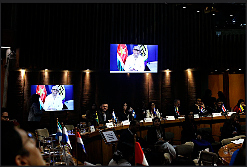 他同时指出苏里南依托油气行业发展预期的经济进步,强调需负责任地管理相关收益以惠及当代与未来世代:”我们近期在议会通过了《财富与稳定基金》,作为可持续财政政策的保障。”拉姆丁部长还倡导加强美洲国家组织(OAS)及其他泛美机构与联合国、拉共体等国际组织的合作:”我们应聚焦合作而非分歧,只有通过议程协同与资源高效配置,才能确保可持续增长、安全与和平。开展结构化社会对话是让发展成果切实惠及目标人群的唯一途径。”