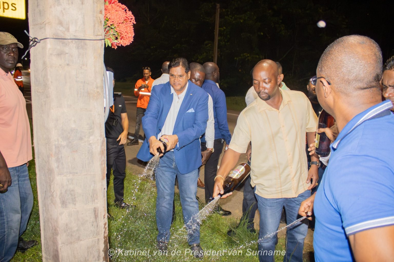 《政府网讯》 在Commewijne区,东西主干公路沿线安装新路灯,标志着提升道路安全与当地居民生活质量的重要一步。这项发展得益于自然资源部与苏里南能源公司(N.V. EBS)以及Alki技术集团的合作。4月18日(星期五)举行的启用仪式上,总统Chandrikapersad Santokhi、自然资源部长David Abiamofo、EBS总经理Leo Brunswijk及Commewijne区区长Mohamedsafiek Radjab均有出席。总统亲自为路灯通电。