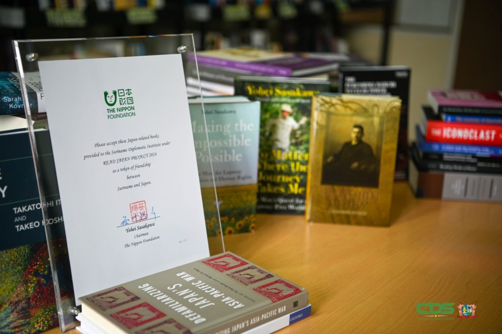 “阅读日本计划”是由日本政府发起的一项国际文化交流倡议,旨在透过图书捐赠,促进各国对日本政治、社会与文化的理解。各受赠单位可按自身需求指定所感兴趣的主题。苏里南此次选定的领域包括政治学、历史、文化、经济与商业,并从庞大的书目中选出200种。