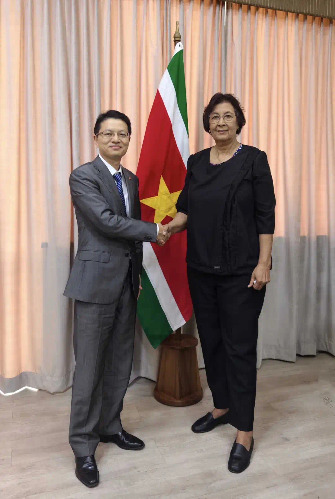 2025年7月22日,中国驻苏里南大使林棘拜会苏里南新任总统西蒙斯。