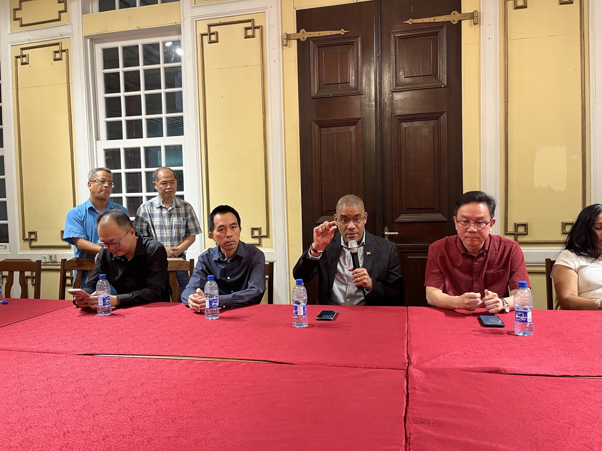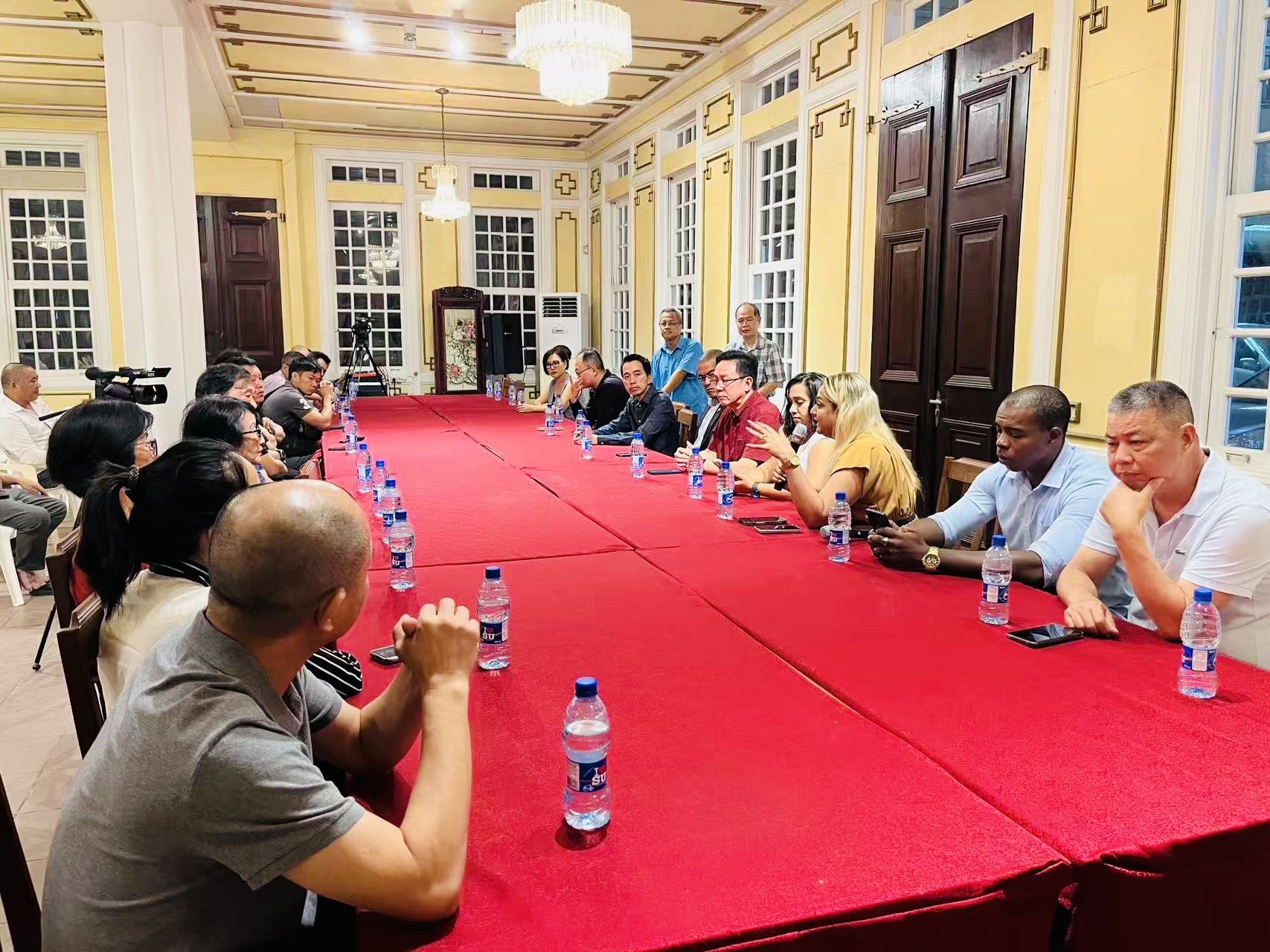 《广义堂新闻讯》8月21日下午7:00时,苏工商部长Baasaron及随行官员应国会议员刘静航、王传瑞之约来到广义堂,与苏里南华侨华人社团的侨领和代表举行座谈会,来自苏华总会及各侨社的侨领和相关人员出席。