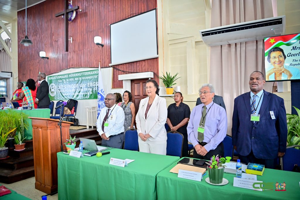 总统围绕”我,上主,是建造者”的大会主题,呼吁教会与国家共同开展反思。”正如EBGS正在思考未来,独立50周年的苏里南也需要总结成功经验、改进不足,共同谋划国家建设蓝图,”西蒙斯总统指出。