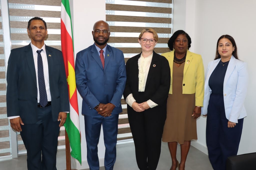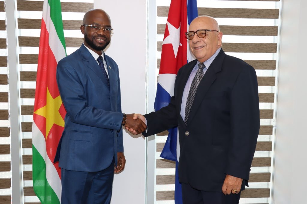 在与古巴大使Roberto Blanco Domínguez阁下会谈中,双方回顾两国历史纽带及古巴医疗专家对我国的宝贵贡献。Misiekaba部长请求新增支持(尤其是针对医疗资源紧缺的内陆地区),并承诺加强对在古苏里南留学生的关怀。Blanco Domínguez大使表示已做好深化合作准备。