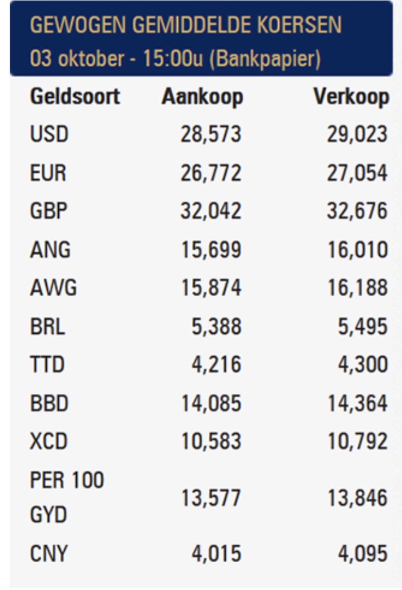 星网讯-汇率继续飙升。苏里南中央银行于10月3日(星期一)下午,报出的平均美元汇率为 29.02。欧元则为 27.05。