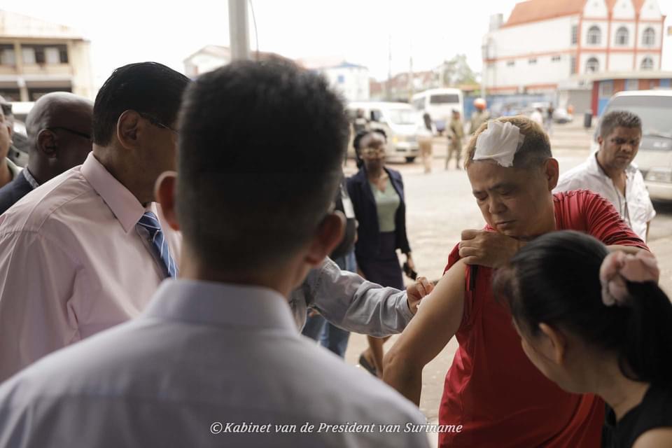 《政府网讯》 2月21日(星期二),Chandrikapersad Santokhi 总统探访首都市中心,因2023年2月17日(星期五)暴乱而遭受抢劫和破坏的商户。国家元首亲自向受害者表示慰问。经济事务、创业和技术创新部部长Rishma Kuldipsingh 、司法和警察部部长 Kenneth Amoksi 也跟随总统一同前往。总统一行亦看望了在执勤时受伤的部队人员。