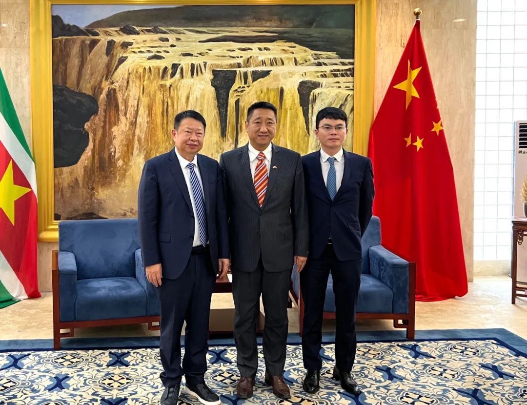 韩大使欢迎陈景河一行来苏考察,对紫金矿业成功收购罗斯贝尔金矿表示祝贺。韩大使表示,中苏两国关系历久弥新,经贸合作潜力巨大。苏里南自然资源丰富,在苏开展资源开发对促进当地经济发展具有重要意义。相信紫金矿业有能力凭借专业团队、先进技术和丰富经验在苏取得丰硕成果,为进一步发展中苏友好关系做出积极贡献。