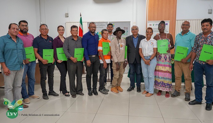 《太阳网讯》 在美洲开发银行 (IDB) 的小型水果项目的背景下,一个名为“建立示范区并启动农民田间学校”的项目,将在苏里南的各个地区开办。农牧渔业部 (LVV) 于 2023 年 6 月 16 日(星期五)与参与该项目的 9 名选定农户签署了协议。这些农户来自 Para、Wanica、Commewijne、Marowijne、Saramacca、Nickerie、Coronie 地区。
