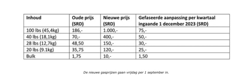 100 磅气瓶的煤气新价格SRD 1,000 ,而不是多年来一直维持的 SRD 186。