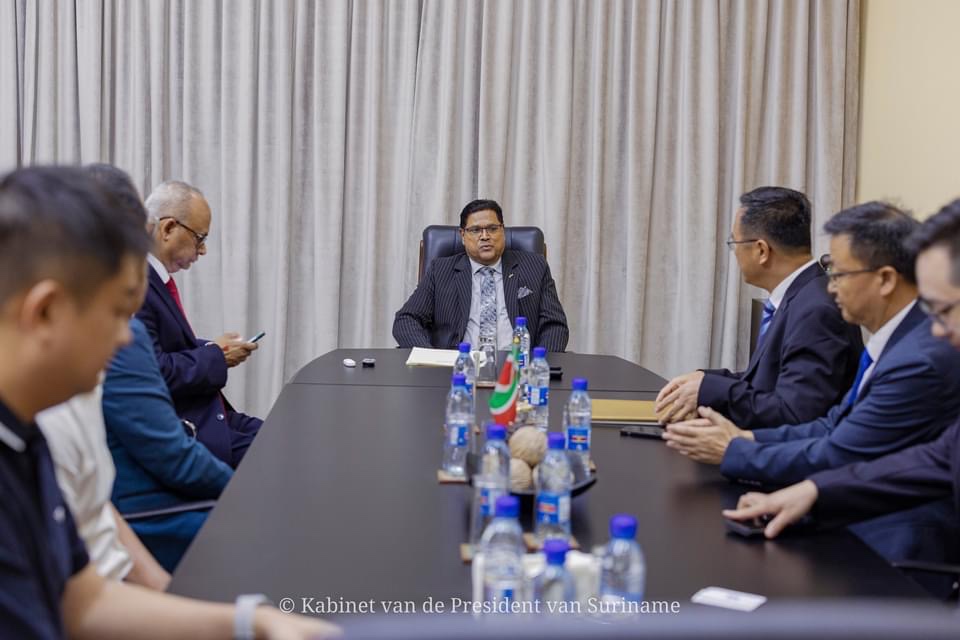 《政府网讯》 2023年9月12日,Chandrikapersad Santokhi总统在总统办公室会见了中国企业家代表团。会议期间,包括上海土木工程集团有限公司(CREC)的代表们在内的企业家们表示,他们有兴趣在苏里南投资。他们的重点是采矿、基础设施、住房建设。