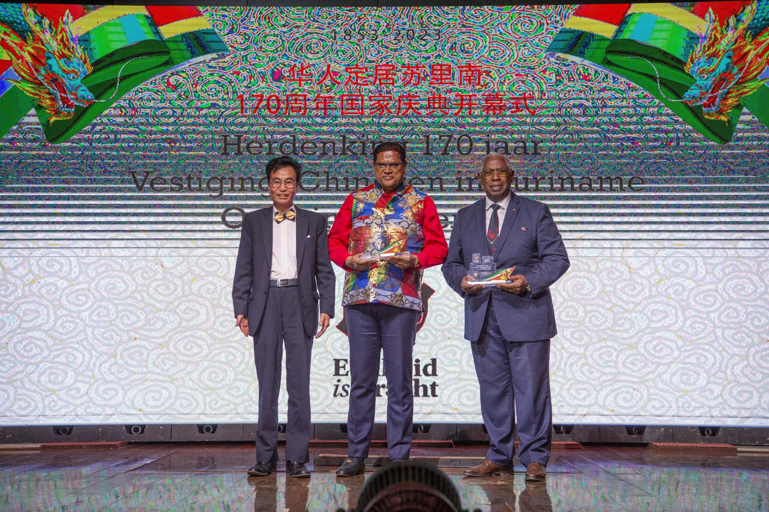 单多吉总统表示,通过这次的庆祝活动,我们不仅向第一代华人的勇气和决心表示敬意,还向随后的好几代的华人表示敬意。苏里南的华人群体在各个领域都表现出色,从创业到文化事业,从教育到体育运动,他们为苏里南的成长和发展做出了积极贡献,他们的贡献是无可估量的。