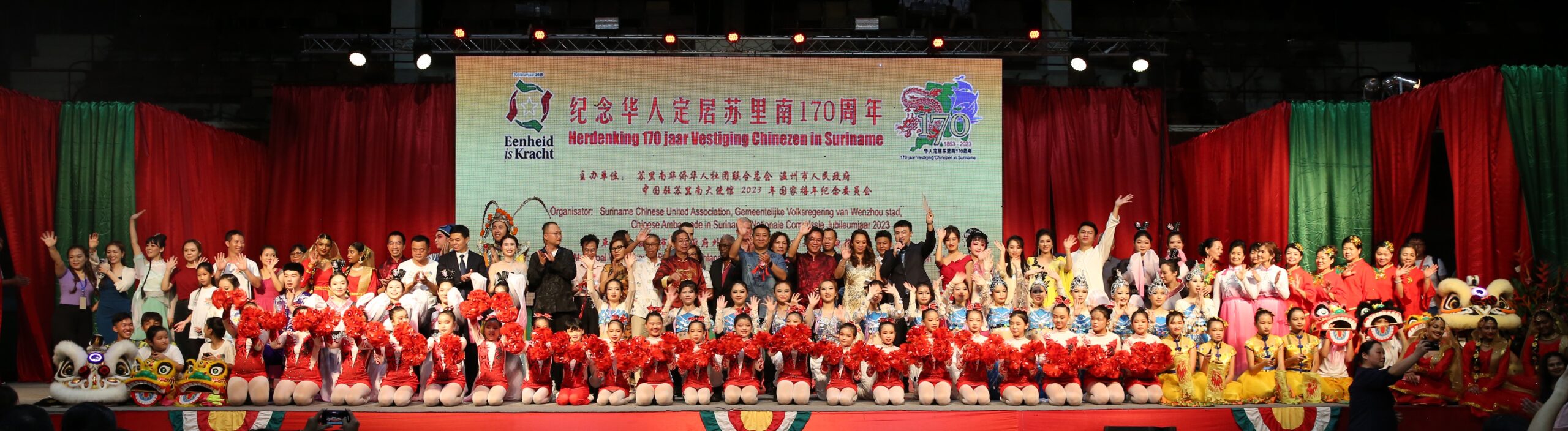 (苏里南大学孔子学院夏敬华供稿) 2023年是华人定居苏里南170周年。为了庆祝这一重要时刻,由苏里南华侨华人社团联合总会、温州市人民政府、中国驻苏里南大使馆以及2023年国家禧年纪念委员会联合主办,温州市人民政府外事办公室、温州市文化广电旅游局承办,温州市文化馆执行承办的“纪念华人定居苏里南170周年晚会”,于当地时间10月20日晚,在安东尼体育馆(Anthony Nesty Sports Hall)盛大举行。晚会旨在铭记先祖,弘扬中华文化,与苏里南全国各族裔共同分享欢乐时刻。