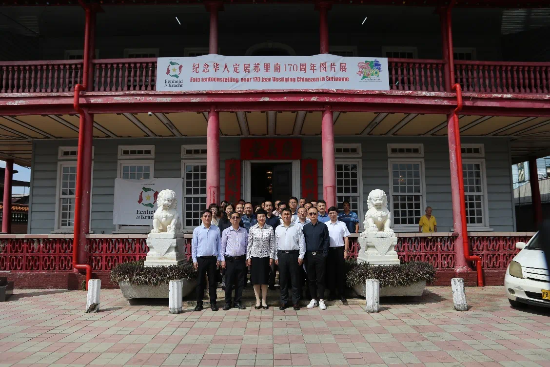 陈旭主任还参观了在广义堂设立的华人定居苏里南170周年图片展。该展览中收集了著名华裔艺术家魏南光等学者和民间友好人士提供的宝贵历史资料,记录了定居170年来在苏普通华人民众的生活镜头。