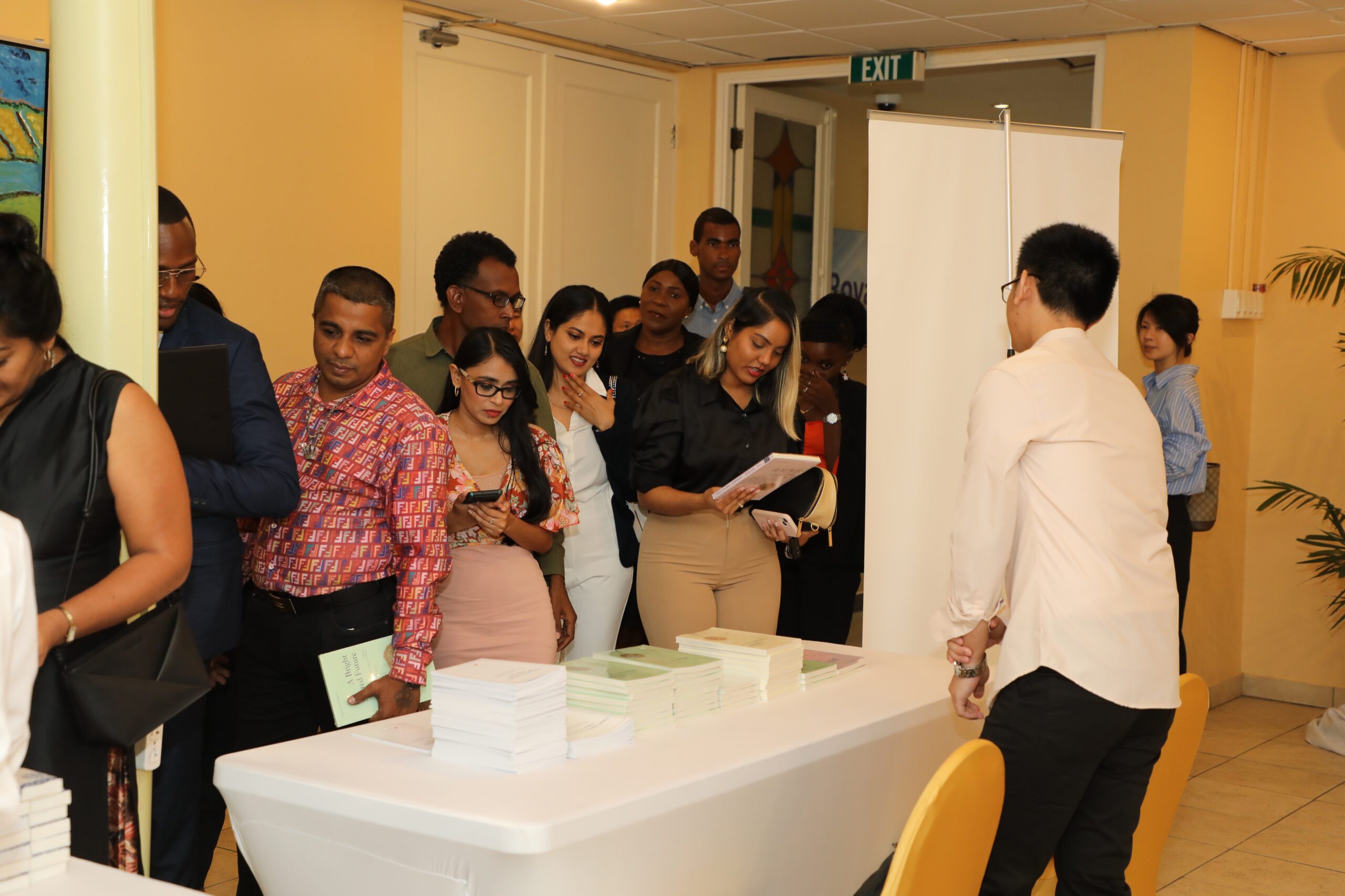 活动洋溢着热情友好的气氛,学员们齐聚一堂,交流经历、共叙友情,一同欣赏了中国国家形象宣传片、“一带一路”宣传片和学员在华期间拍摄的照片视频,纷纷对有机会代表苏里南赴华学习参访深表感谢。现场摆放的《习近平谈治国理政》第四卷、《共同梦想》“一带一路”故事丛书、《携手构建人类命运共同体:中国的倡议与行动》等书籍深受学员们欢迎,被迅速取阅一空。