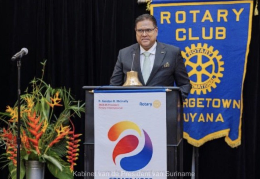 总统Santokhi在演讲中呼吁扶轮社成员携手合作,作为世界公民为世界带来希望,“让我们致力于为每个人带来和平、正义和平等,无论他们的背景或环境如何。”