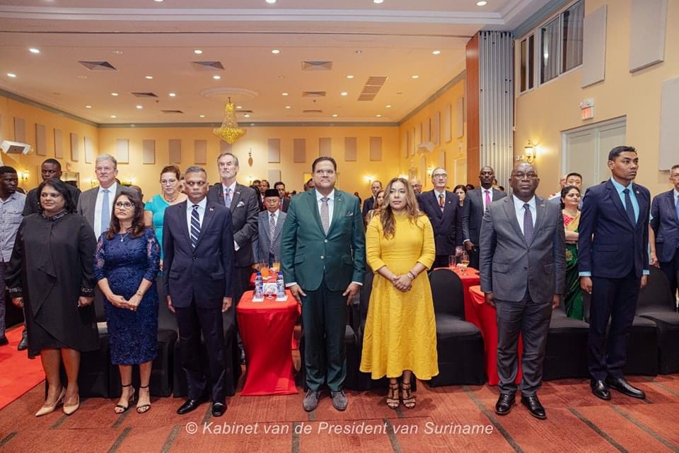 圭亚那大使Virjanand Depoo 回顾了该国独立后的历史,并对不同的时代进行了比较。他提到了独立以来对经济产生积极影响的各种时刻和产品,如成为重要经济支柱的糖业及其大规模生产。Depoo大使还提到苏里南与圭亚那之间的合作关系。“苏里南不仅仅是一个邻国。苏里南是圭亚那在文化、历史和民主方面的伙伴。圭亚那和苏里南通过多个促进经济增长的重要项目加强了合作,”他说。他还强调了苏里南、圭亚那和法属圭亚那在保护圭亚那区域方面的密切合作。Depoo大使对苏里南政府和社会的持续友谊和支持表示感谢和赞赏。