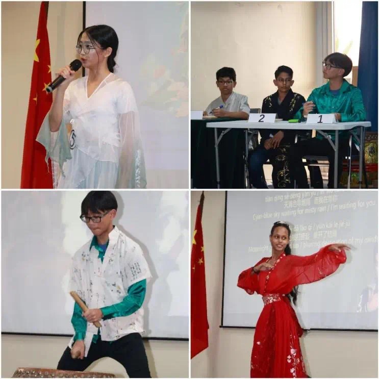 本次比赛分为主题演讲、知识问答、才艺展示等环节。参赛选手充满信心、意气风发,在演讲中深情讲述“追梦中文、不负韶华”的心路历程,对各类中国文化和常识题目对答如流,并献上舞蹈、歌曲、绘画、器乐等精彩表演。孔院教师们还在计分间隙对中学师生进行中文体验教学,现场气氛热烈欢快。经激烈角逐,Chung Hailey同学荣获一等奖,比赛并决出二等奖和三等奖各两名。韩镜大使和其他嘉宾向获奖选手及指导老师颁奖。