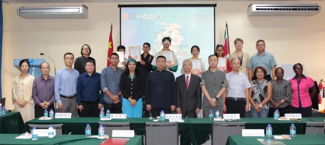 韩镜大使在致辞中表示,苏里南首次举办“汉语桥”比赛意义重大,不仅为参赛选手提供了展示中文水平的舞台,也反映出汉语在苏传承170多年的深厚历史底蕴,更是中国文化在苏里南兴盛传播的生动体现。语言是沟通文化的桥梁,也是工作和学习的实用抓手。希望苏里南青少年通过学习汉语更好地了解薪火相传、赓续至今的中华文明,更好地读懂开放包容、日新月异的今日中国。中国驻苏使馆将根据单多吉总统访华期间两国元首达成的重要共识,继续深化中苏人文交流,加强双方教育合作,助力苏大孔院建设。