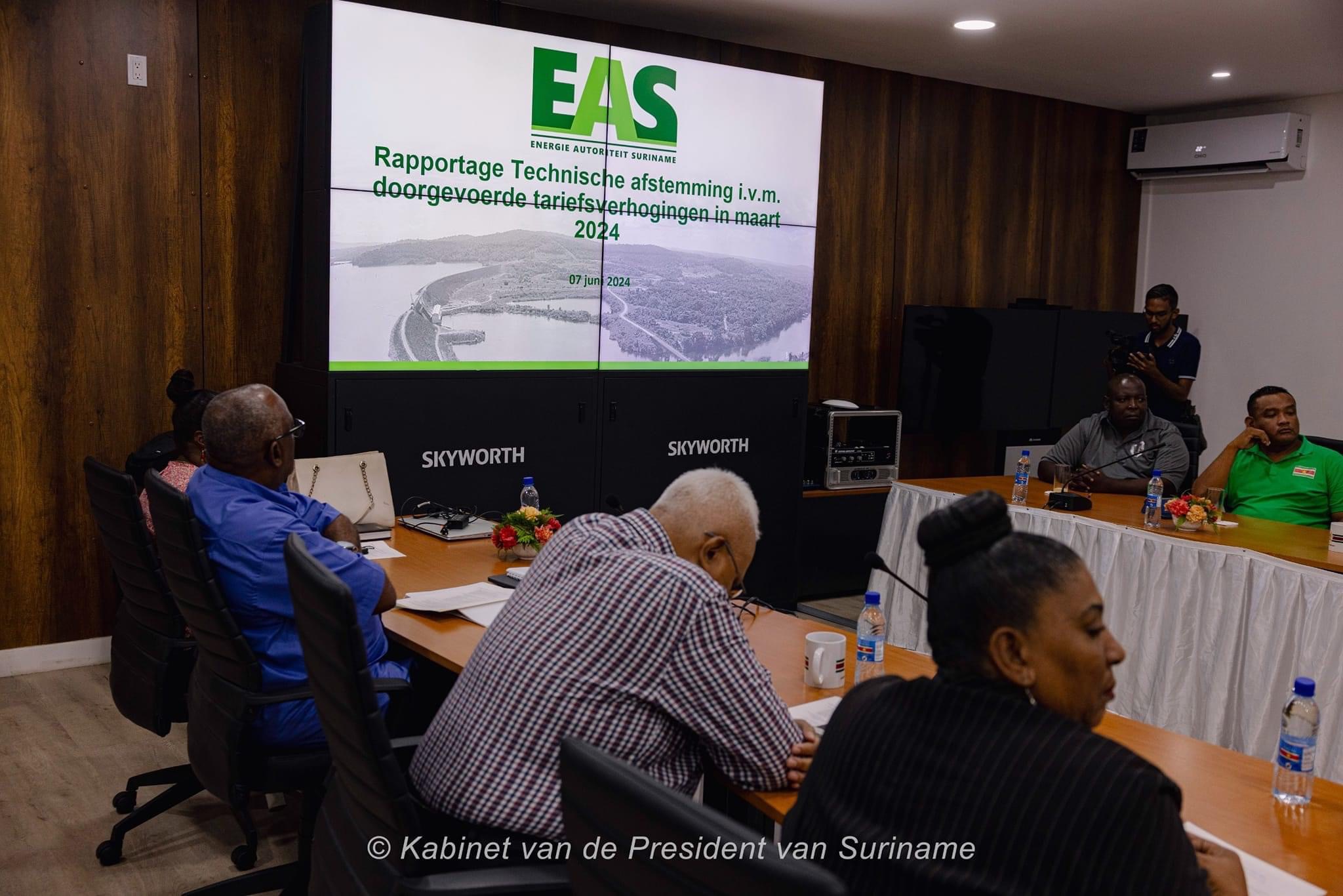 《星网讯》在总统Chan Santokhi的领导下,政府代表团与大部分工会代表,于周五在总统办公室进行了长时间关于电价的协商会议。然而,政府方和工会方的技术委员会对于电费的成本价格仍未达成一致意见。总统同意给予技术委员会更多一点时间进一步磋商以达成共识。