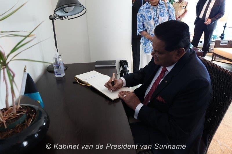 《政府网讯》总统Santokhi率领的一个代表团抵达巴哈马的Nassau参加第三届非洲-加勒比海会议。该会议由非洲进出口银行赞助和组织。总统于6月11日抵达时受到了军礼欢迎,并被护送到酒店,他将在那里从2024年6月12日至14日逗留。