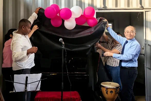 最后,刘代办同潘卡校长共同为使馆所赠中国产钢琴揭幕,并现场聆听学生们用新乐器演奏包括中国乐曲在内的多首曲目,现场嘉宾、师生和家长共同欣赏美妙的乐章。