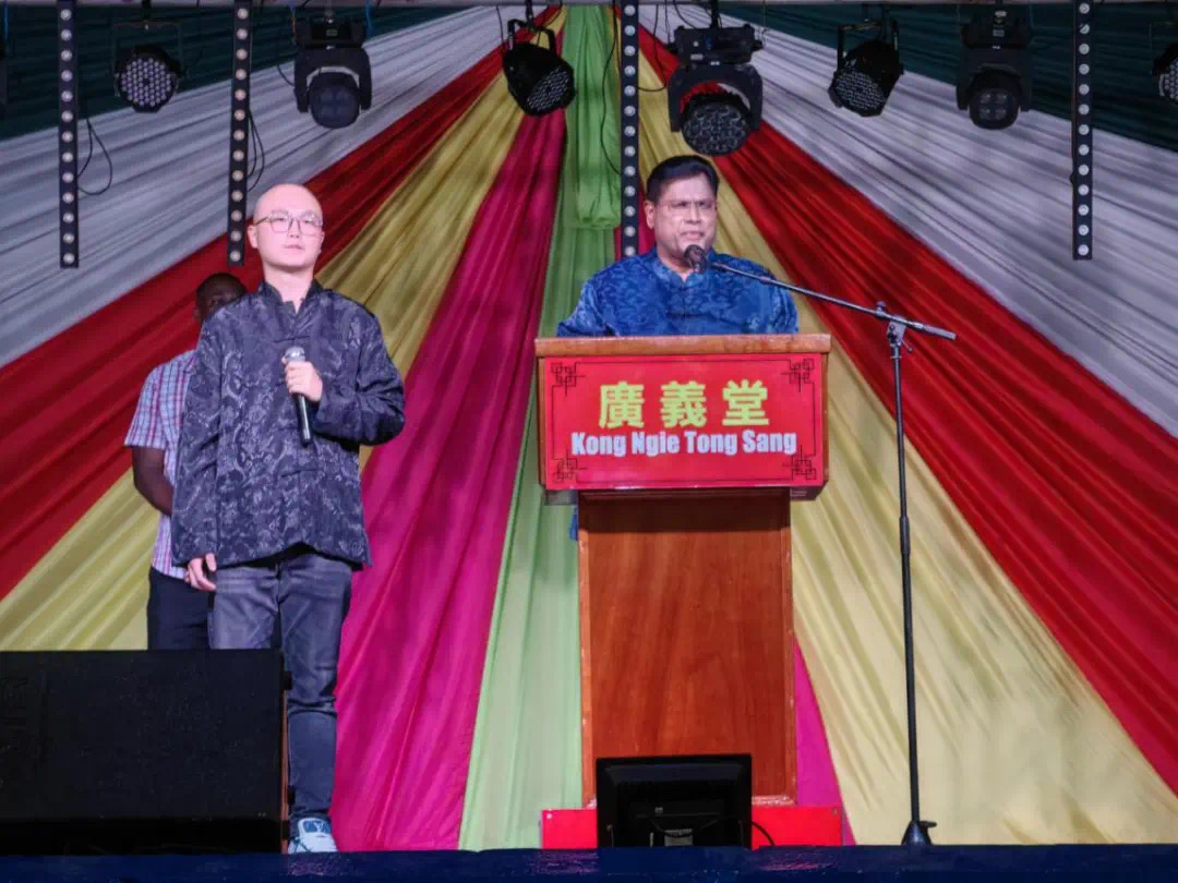单多吉总统发表致辞,向旅苏华人社团致以诚挚的节日问候,表示以中秋节为代表的中华文化随华人先辈来到苏里南落地生根,深受各族裔尊重和喜爱,已成为苏社会多元文化的重要组成部分。苏政府将继续致力于促进各族裔和谐共生、共同繁荣,支持华人在苏兴业发展,拉紧与中国关系纽带,造福两国人民。