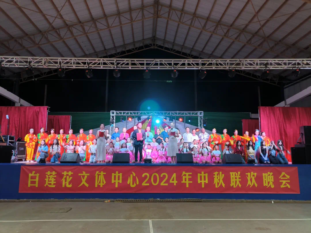 9月15日,驻苏里南使馆刘振华临时代办出席在白莲花文体中心举办的中秋联欢晚会。苏里南总统单多吉、国会议员王传瑞、曾锦荣、白莲花文体中心主席刘静航与侨团代表和苏各界友人等共千余人参加。