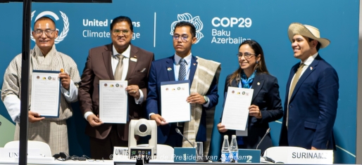 《政府网讯》在第29届联合国气候变化大会(COP29)期间,由碳负排放和碳中和国家组成的G-Zero联盟在阿塞拜疆巴库正式成立。苏里南与不丹、马达加斯加和巴拿马共同作为该开创性联盟的创始成员,致力于推动全球朝着气候中和和气候韧性世界的方向迈进。