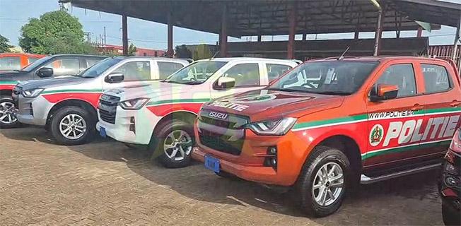 司法警察部长Amoksi 高兴地说。“过去几年,警察对交通工具的需求非常迫切,我们一直在努力解决这个问题。我非常感谢银行协会和 Staatsolie 的支持。今天,我们从这150辆车中获得了第一批。”