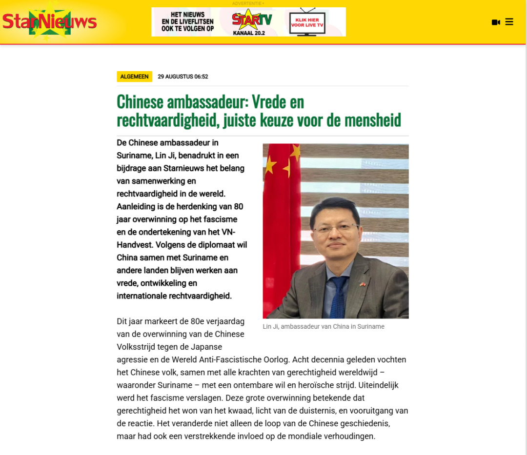 驻苏里南大使林棘在苏主流媒体发表署名文章《一个中国原则不容挑战》