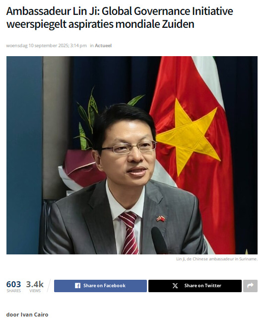 驻苏里南大使林棘在苏主流媒体发表署名文章 《全球治理倡议符合全球南方国家共同期待》