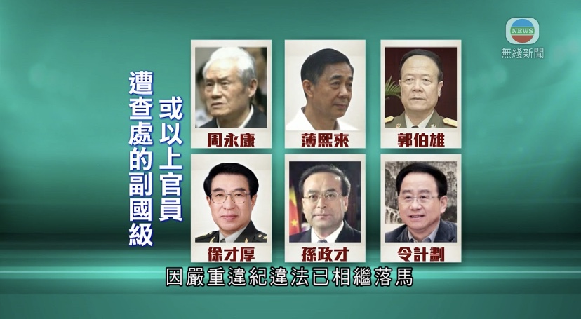 「打虎」方面,周永康、薄熙来、郭伯雄、徐才厚、孙政才、令计划等副国级或以上官员,因严重违纪违法已相继落马。 至于「拍蝇」,单在今年上半年,全国纪检监察机关处分超过26万名腐败官员、查处五万多个问题,不少是涉及公共停车管理、中小学校学生餐,以及虚假违法广告等。 在「猎狐」方面,中共十九大后到今年7月切断腐败分子后路的天网行动,共追回外逃人员6,900人,追回赃款近328亿元人民币。