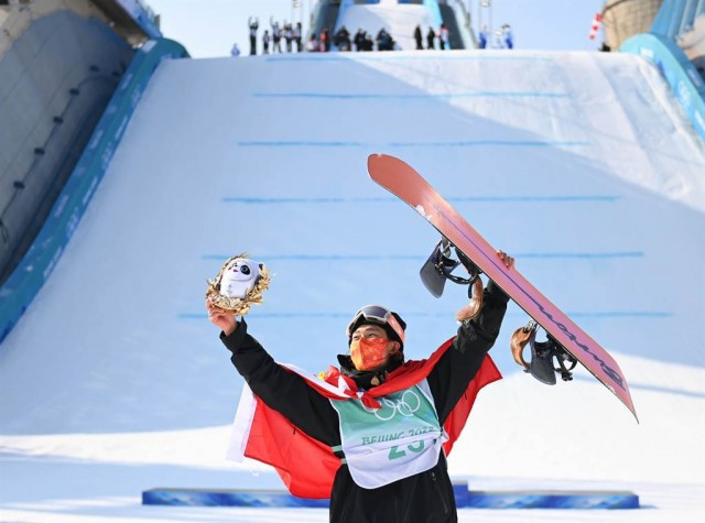 第三跳开始前,由于之前出场的选手得分没有超越苏翊鸣,他提前夺金!